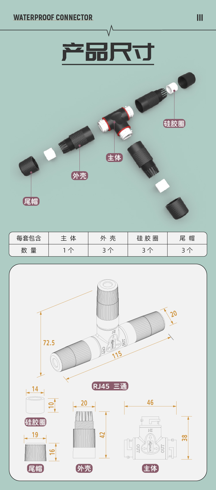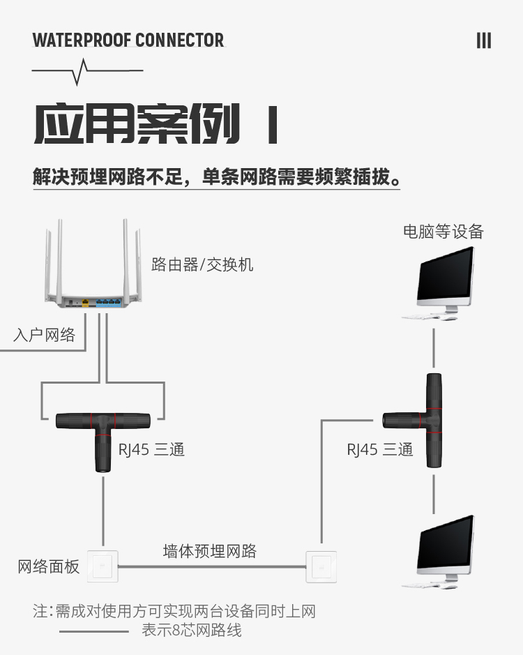 RJ45網(wǎng)絡(luò)防水三通連接器